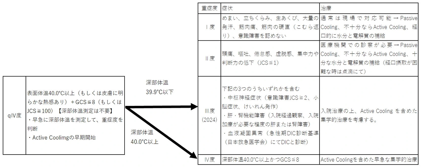 深部体温 40.0 ℃以上かつ GCS ≦ 8 |