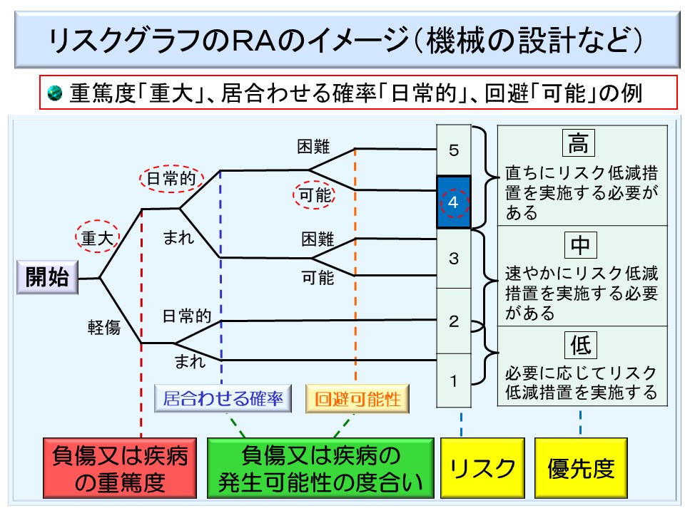 ア リスクアセスメント対象物が当該業務に従事する労働者に危険を及ぼし、又はリスクアセスメント対象物により当該労働者の健康障害を生ずるおそれの程度(発生可能性)及び当該危険又は健康障害の程度(重篤度)を考慮する方法。具体的には、次に掲げる方法があること。