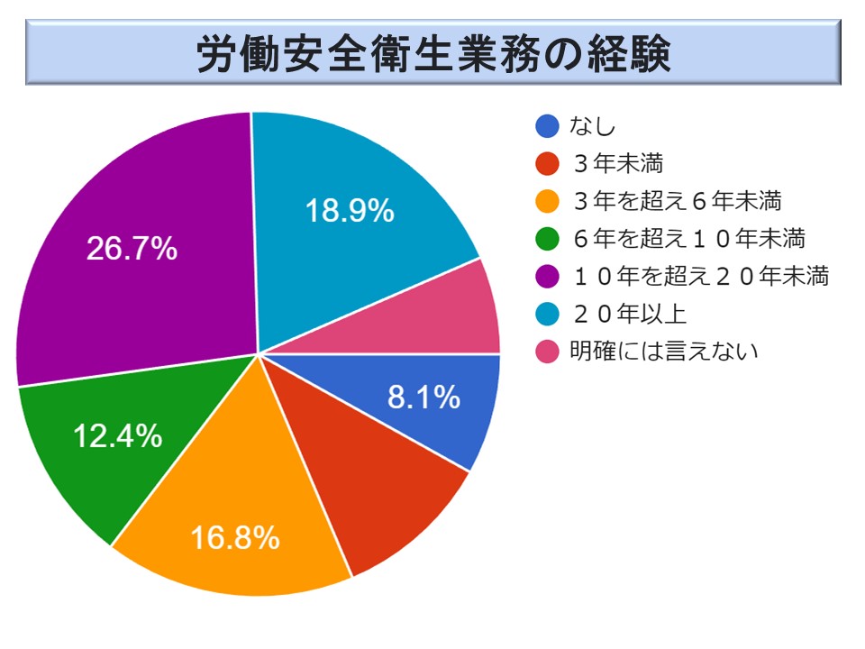この受験者に関するこのアンケート調査は今年度で4年目になる。その結果からは、受験者の年齢の高さと経験年数の長さから、労働安全という職能分野のグループは、短期間では育成が困難な専門家の集団だということが分かる。