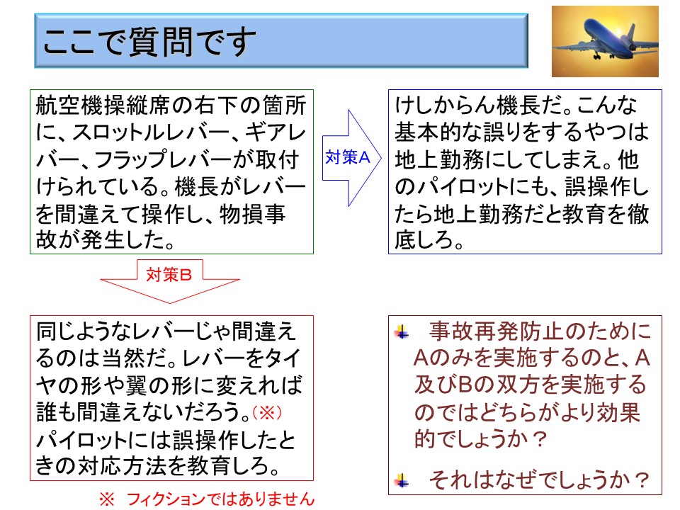そして、もうひとつは、レバーの先端の形状を変えるという先ほどの対策と合わせて、ミスを犯した機長を地上勤務にしてしまうという「処罰」を同時に行うというものである。
