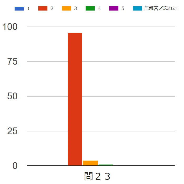 | 2023年度(令和05年度) | 問23 | 難易度 | 本問は、過去に類問が多いこともあるが、正答率は高かった。 |