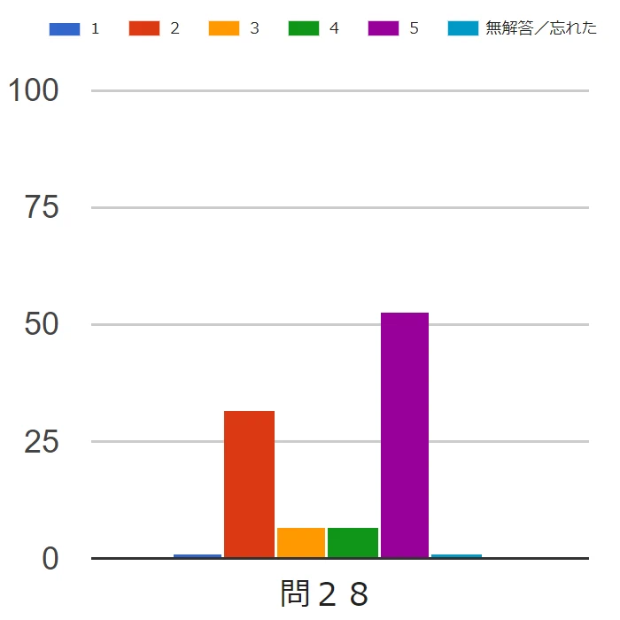 | 2023年度(令和05年度) | 問28 | 難易度 | 安コンとの共通問題。安全管理等は2年続けての出題だが正答率は低かった。合否を分ける問題であろう。 |