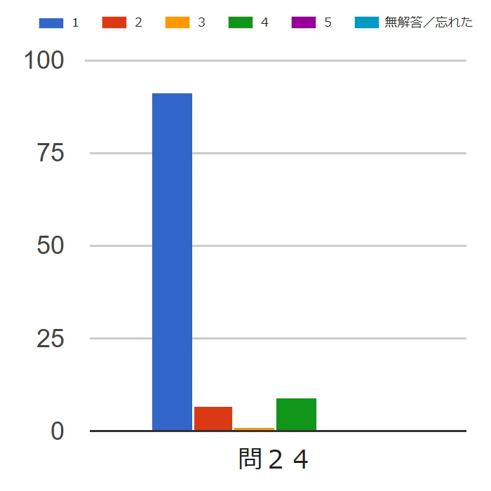 | 2024年度(令和06年度) | 問24 | 難易度 | 作業改善に関する問題は、例年、意味不明な内容となっている。正答率は高いので、気にする必要はない。 |