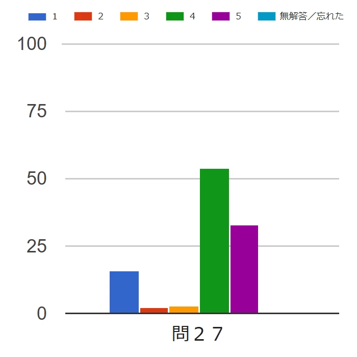 本問は、正答の(4)と誤答の(5)に受験者の解答が分かれた。ニで迷った受験者がかなりいたということであろう(※)。しかし、ニについても統計に関する基本的な内容であり、正答できなければならない問題である。