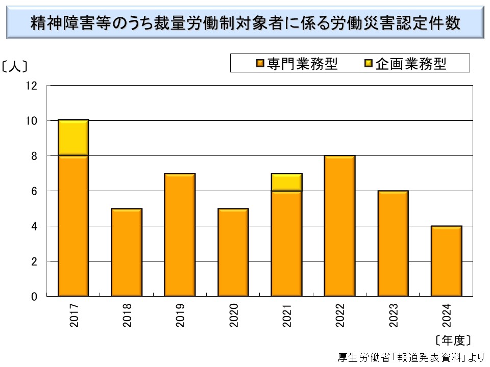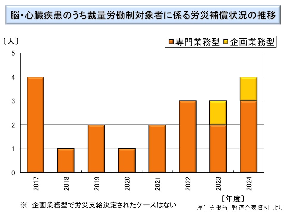 2017 年以降の「脳・心臓疾患及び精神障害のうち裁量労働制対象者に係る労災補償状況」が公表されている。それも合わせて示しておく。