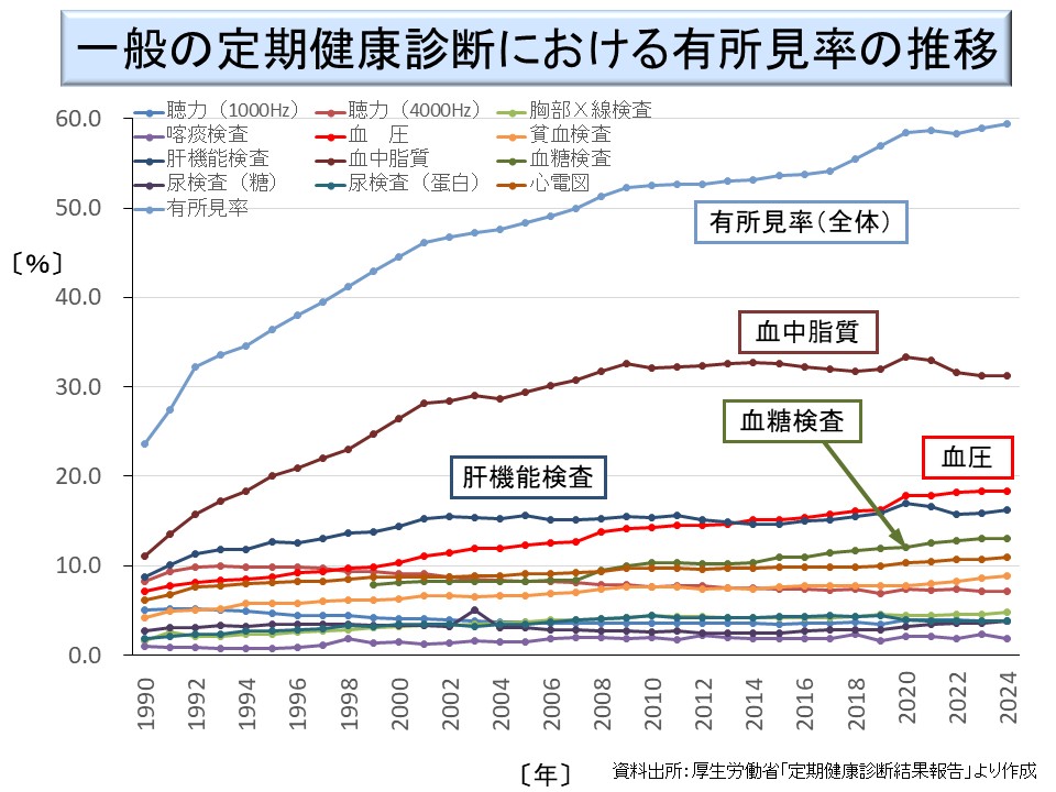 しかしながら、血中脂質、肝機能、血圧などの生活習慣病に関する項目が増加していることは、我が国の発展にとってきわめて深刻な状況であるといえ、予防医学の重要性がきわめて大きいことを示していると言えよう。