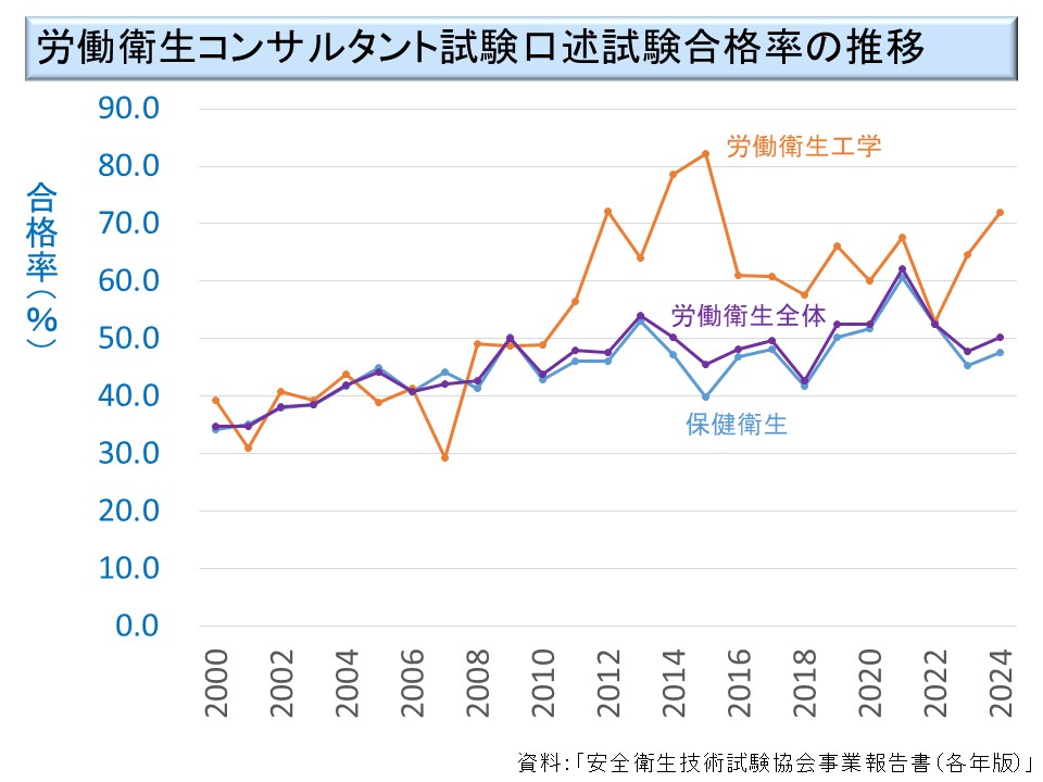 一方、口述試験の合格率はかなり低い。長期的には上昇傾向にあるが、近年の合格率は5割程度で推移している。