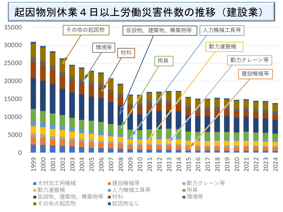 (2)建設業における起因物別労働災害発生状況