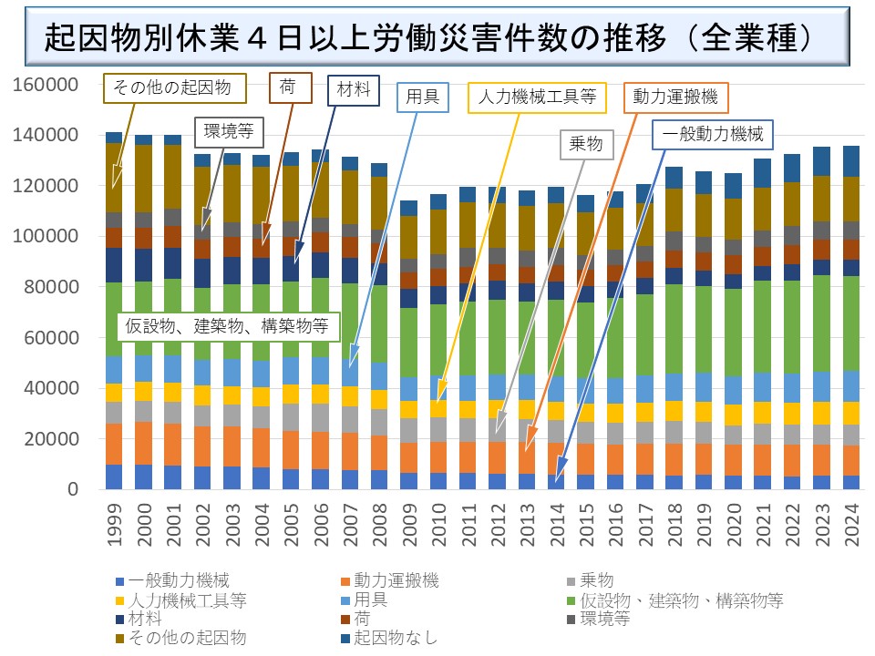 - 災害の型・起因物ごとの労働災害発生件数の推移