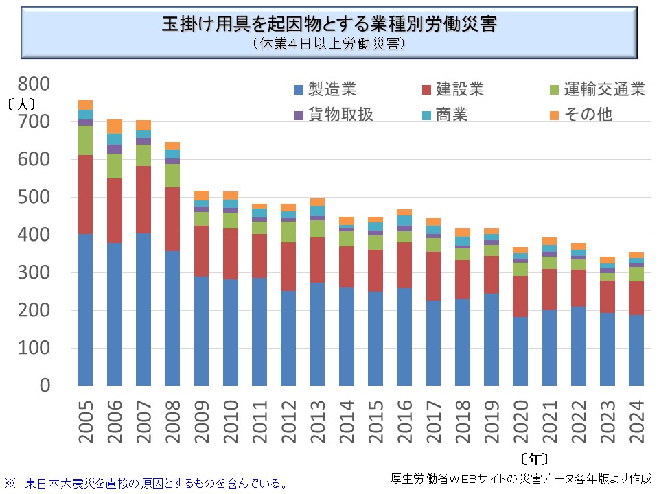 次に、関連するものとして「玉掛用具」についてみてみよう。業種別には、クレーン、移動式クレーンの場合とほぼ同じである。