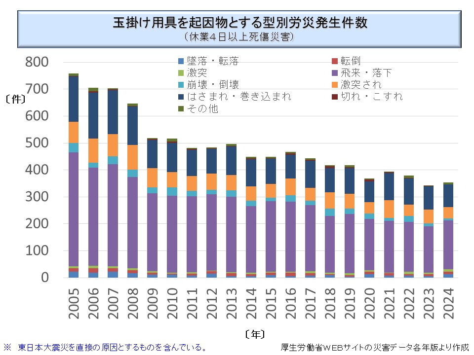 また、「飛来・落下」も多いが、玉掛けの問題が多いということが分かる。