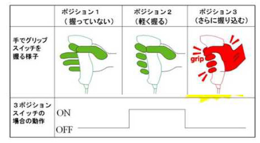 (2)イネーブル装置は、すべての操作スイッチに優先し、操作スイッチを押している間だけ機械の運転を許可する補足的な手動操作装置である。