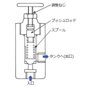 油圧装置内の圧力が異常上昇した場合に、作動油をタンクにリリーフすることによって、圧力を一定値以上に上昇しないようにして、油圧装置の破損や原動機の過負荷を防止するための装置である。