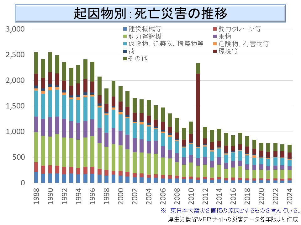 死亡災害は「墜落・転落」災害が多いので、起因物も「仮設物・建築物・構築物等」が多いと思われたのか、本肢を選んだ受験生は少なかった。