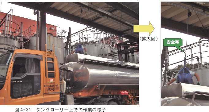 なお、図中に安全帯との表示があるが、これは安衛令等の改正が行われる前の資料なので安全帯とされているが、現在は墜落制止用器具と表示されるべきものである。