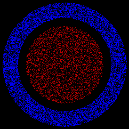※ 言われてみれば、赤が手前に見えるという気がしなくもないが、同じようなレベルで青が手前に見えるようにも見えなくもない。