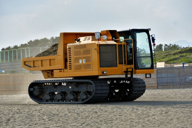 図2のような小型の不整地運搬車では、運転席だけの前後の方向を変えられるものもある。このタイプでは、荷台が運転席の前にくることもあるが、荷を積載して走行するときは、通常は荷台側を後方にして運転するだろう(※)。