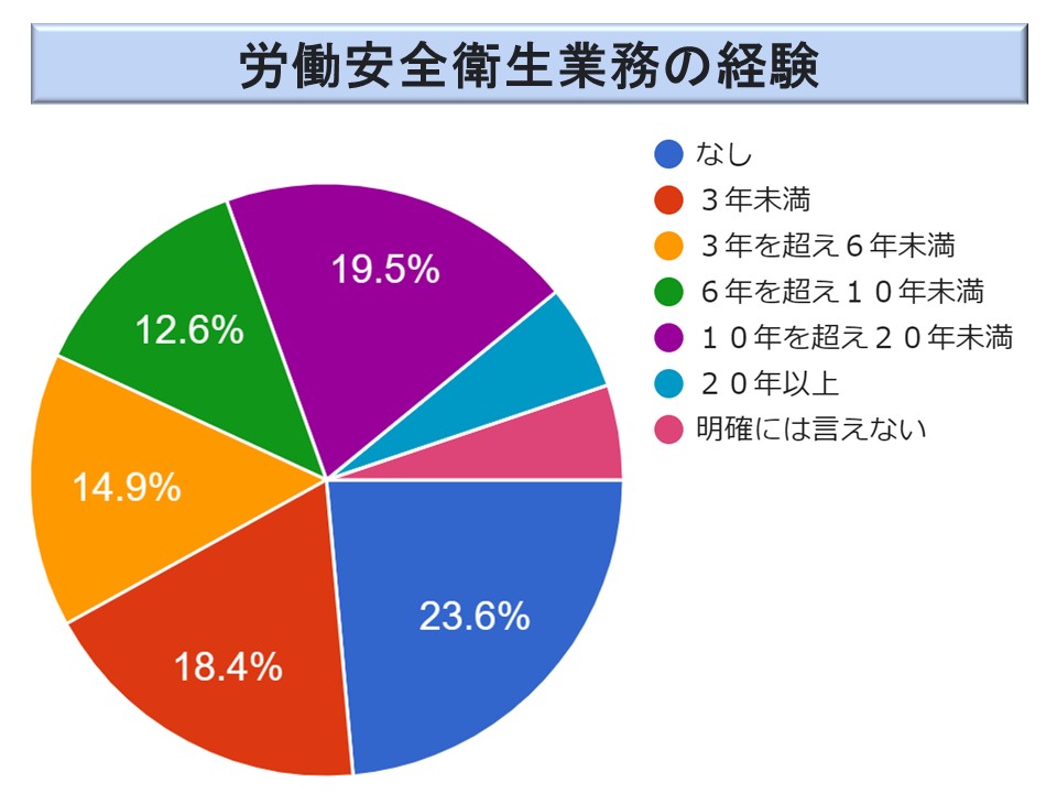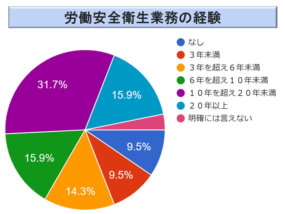 受験者に関するこのアンケート調査の結果からは、その年齢の高さと経験年数の長さから、労働安全という職能分野のグループは、短期間では育成が困難な専門家の集団だということが分かる。