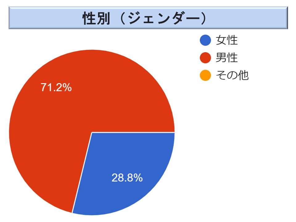 また、女性は28.8%(25.6%)とわずかに増加している。その他の方は0.0%(0.8%)(※)となった。