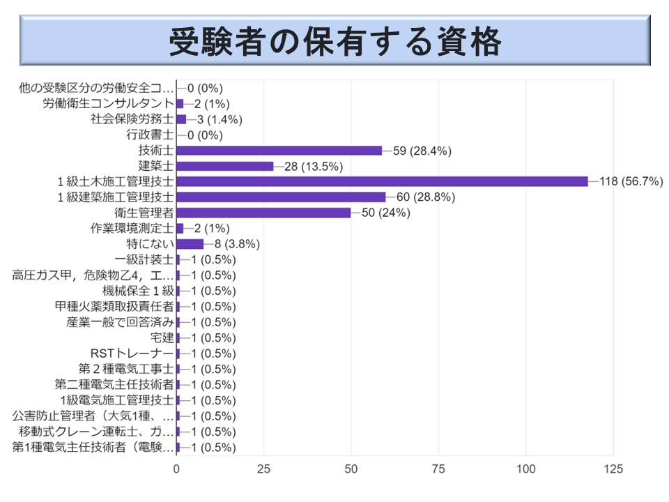 2024年の労働安全コンサルタント試験の受験者の状況をアンケート調査結果に基づいて紹介しています。