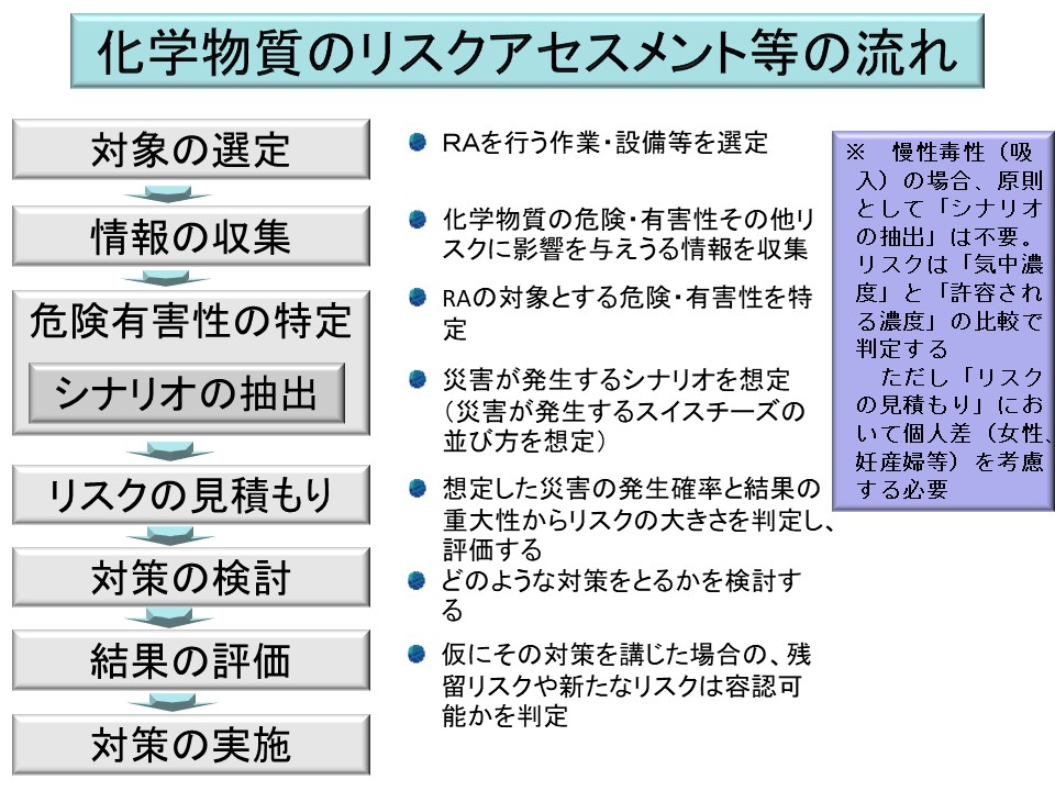 また、繰り返しになるが、労働安全衛生法の規定を待つまでもなく、事業者は労働者の安全を確保する義務(安全配慮義務)があるのだから、すべての危険有害な化学物質についてリスクアセスメントを行うべきことは、いうまでもないことである。