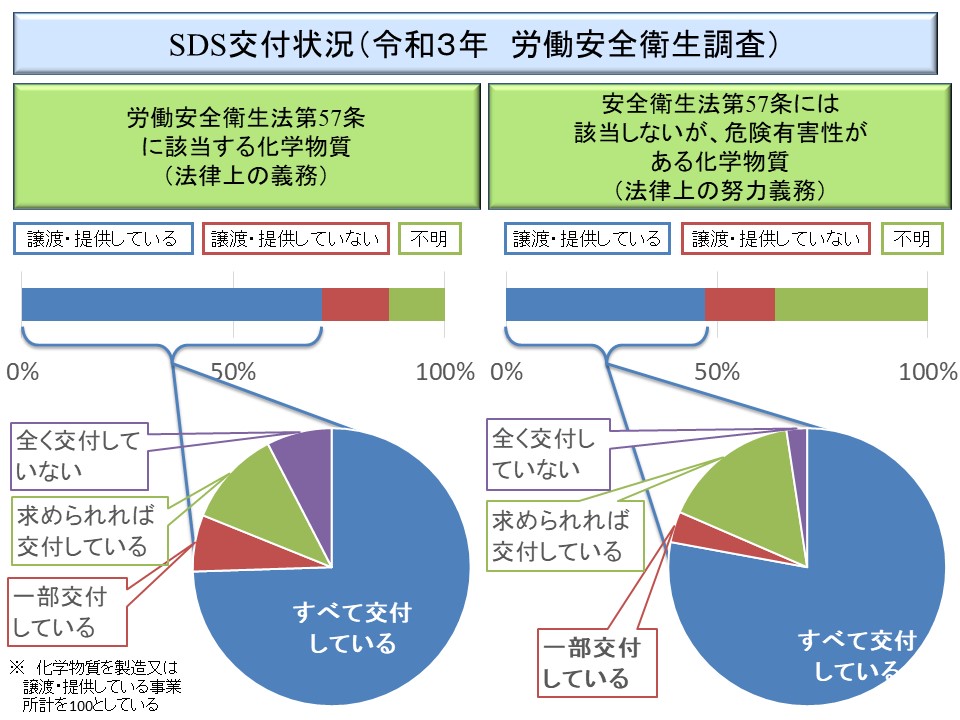 対象となる化学物質を第三者に提供しておきながら、SDSを交付しない事業者がかなりいることも事実なのeある。もちろん提供元企業は違法状態だが。