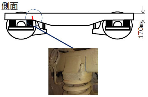 図2:台車枠の一部に亀裂(図1の拡大図)