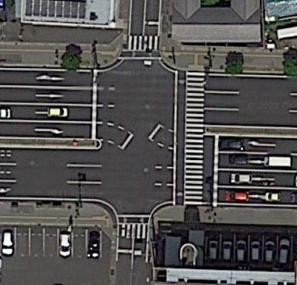 また、G県のある大都市の駅前の通りの交差点は、いささか歩行者には迷惑な構造になっている。普通、交差点の横断歩道はロの字になっているか、歩行者の通行量が多ければスクランブル交差点にするものだと思う。ところが、駅前の大通りであるにも拘わらず、交差点の横断歩道がコの字になっているところがほとんどなのだ。