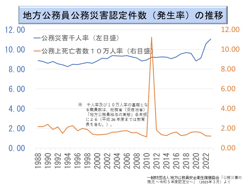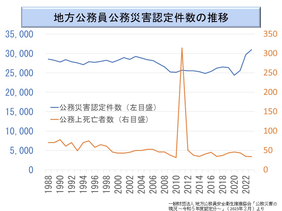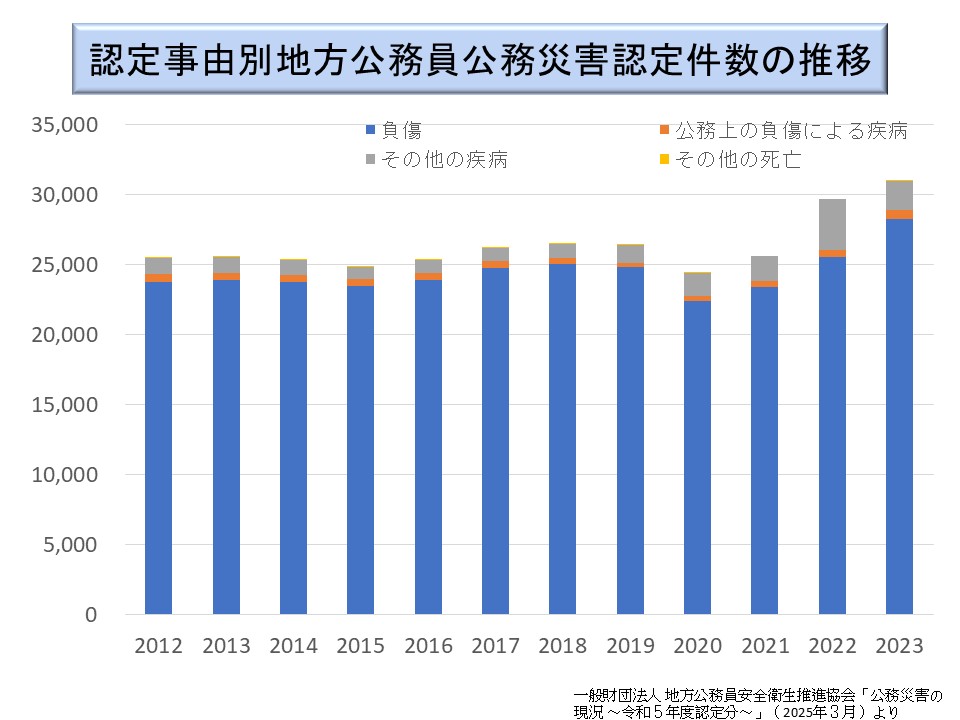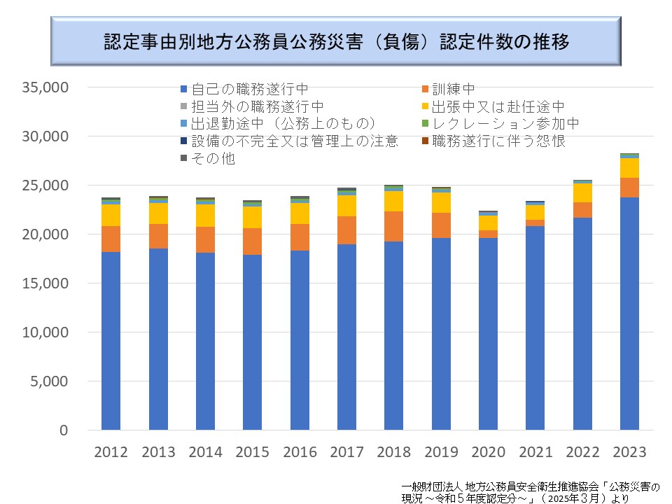 ※ 一般財団法人 地方公務員安全衛生推進協会「公務災害の現況」(最新改訂:2025年3月)より