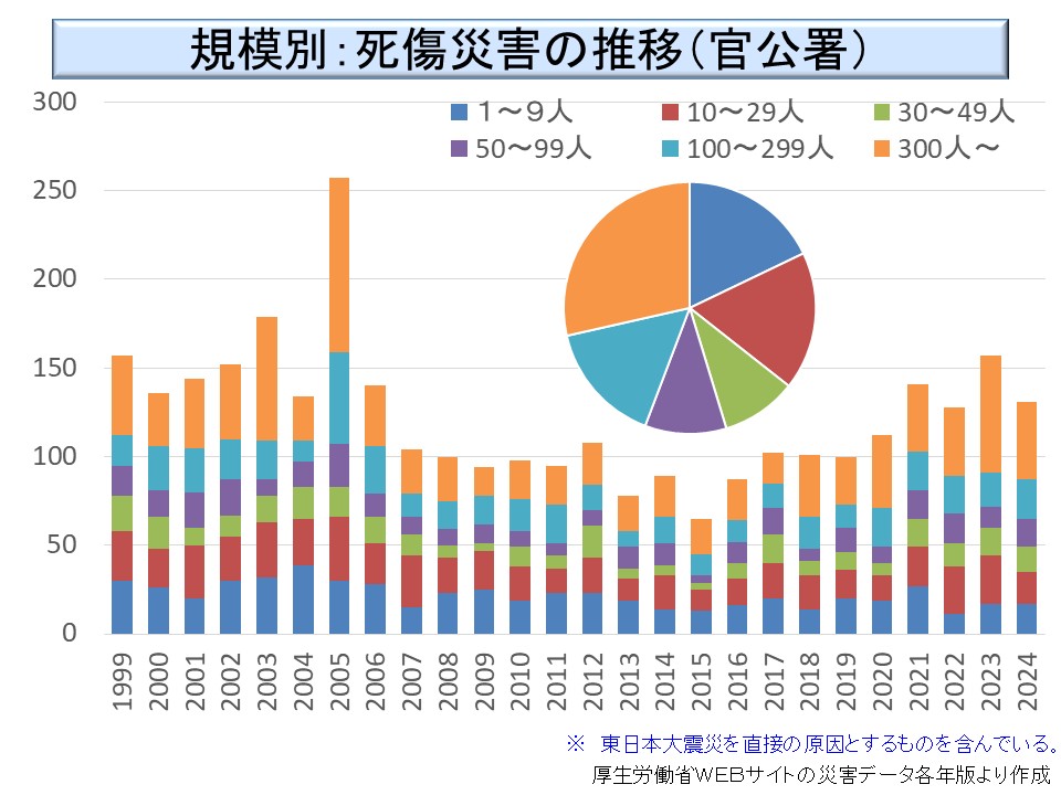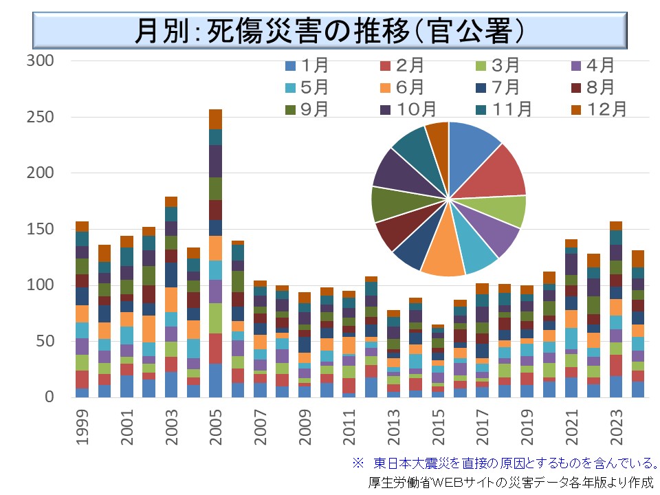 一般の労働災害に比較すると、死亡の割合が高いように思える。