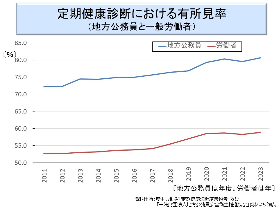 なお、これに関連する情報として、地方公務員と一般の労働者の有所見率の推移(※)を次に示す。