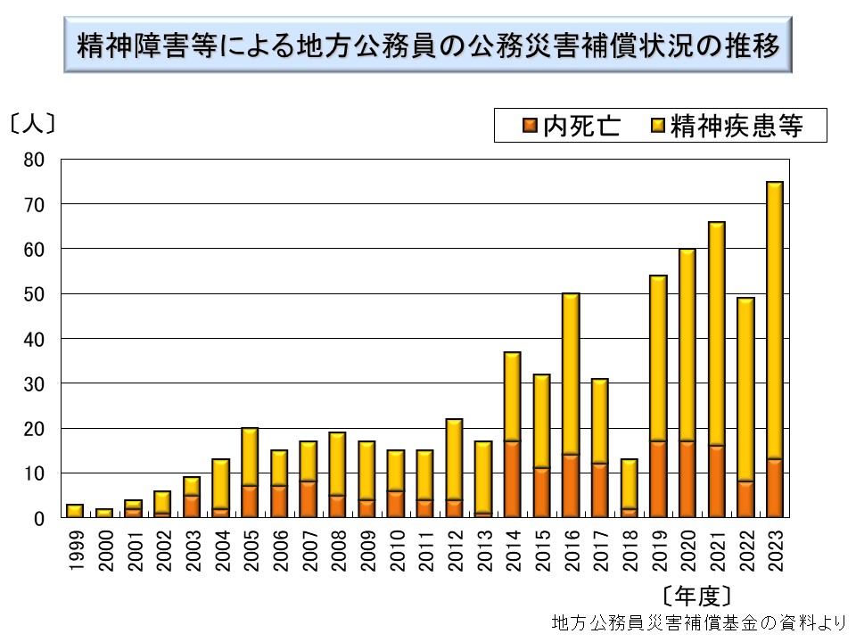 ※ 総務省「令和6年度 地方公務員のメンタルヘルス対策の推進に関する研究会 報告書」(2025年3月)