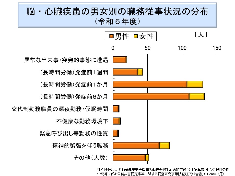 ※ 独立行政法人労働者健康安全機構労働安全衛生総合研究所「令和5年度 地方公務員の過労死等に係る公務災害認定事案に関する調査研究事業調査研究報告書」(2024年3月)