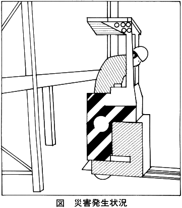 このため、被災者Xが、リーチフォークリフトを後退させた際に、ラックの棚板と運転席の前部の間に挟まれたものである。これは、操縦席後部に支柱があれば防げた事故であった。