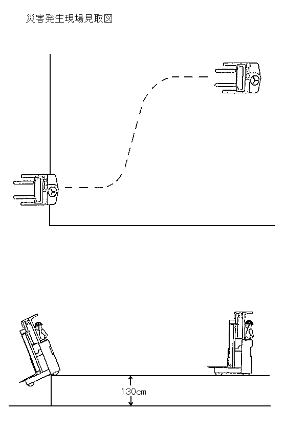 Xが、リーチフォークリフトを見ると、本来の操作者(B)はその場を離れており、キーがついたままであった。Xは、本来の業務ではなかったが、リーチフォークリフトの操作方法は知っていたので、運転席に載ってホームの端まで移動させ、停止させようとしてデッドマンブレーキを踏み込んだ。