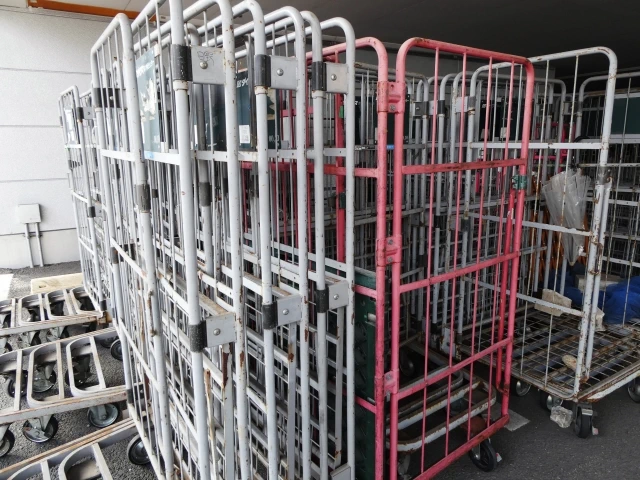 なお、ロールボックスパレットの材質は、かつては鋼鉄製のものがあったが、現在ではプラスチック製のものしか製造されていない。