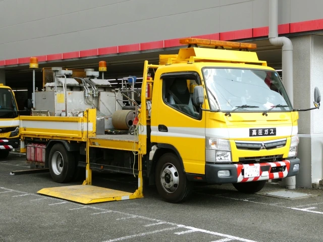 現行法令では、最大積載量が5トン以上の貨物自動車について、荷の積み卸ろし作業を行う場合について、昇降設備の設置が義務付けられている。図は、貨物自動車に設置されている昇降設備の例である。