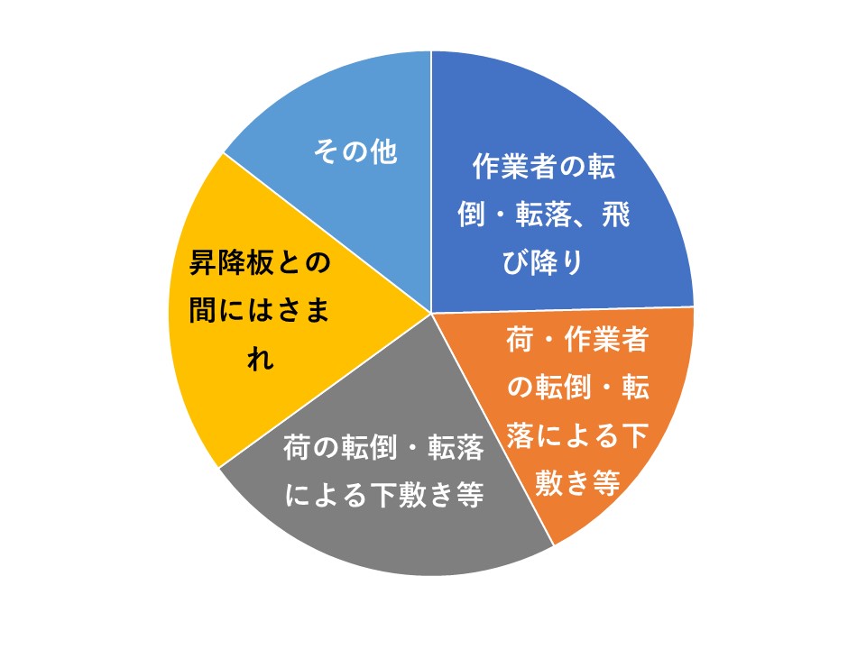 「その他」を除く最後の「昇降板との間にはさまれ」は、昇降板を昇降等の操作をしているときに、昇降板上に載っていたか、近くに寄っていたための災害であろう。