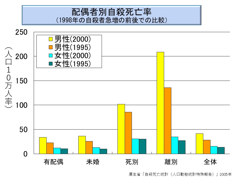 すなわち、このときの自殺者数の急増の要因には、男性の離別者が大きく関与しているのである。